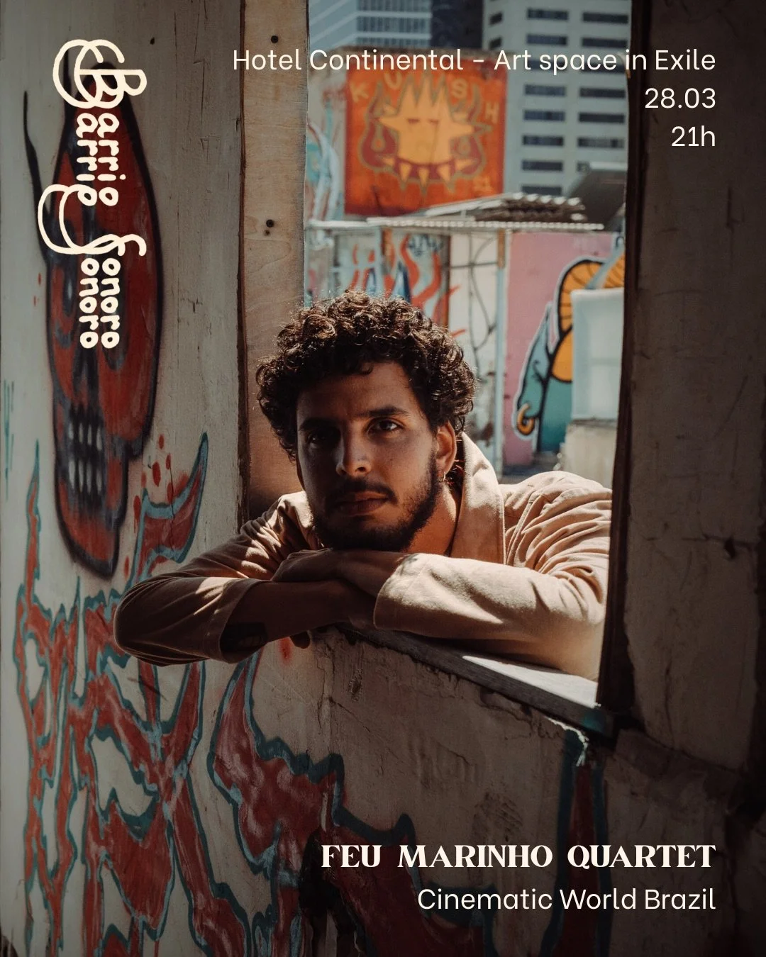 For Barrio Sonoro he will be accompanied by Malte Bogner (piano), Stefan Mueller (bass), and Andy Ptashaka (trombone) and present to the world his upcoming and second album “Volume” in quartet. Expected to be released in 2026, it is a journey of co-productions between Feu, Yonatan Harari and Federico Zaltron, to which was added to the polished touch of Malte Bogner and Andy Ptashka. Feu appeared on the international roads having performed and touring Europe, Asia and Africa and collaborating with several names as Jacob Collier, Daniel Harlev, Itay Spiegel and A Panda do Sol.